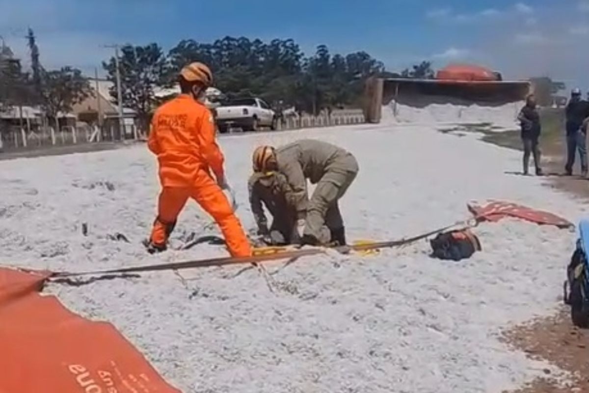 | 28/11/2025 Idosa é soterrada em carga de algodão após carreta tombar ao tentar desviar de vítima em bicicleta elétrica |